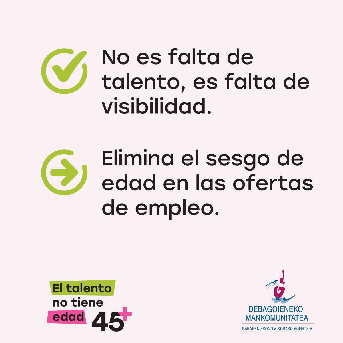 Desde la Agencia de Desarrollo de Debagoieneko Mankomunitatea hemos iniciado una campaña titulada “Talentuak ez dauka adinik / El talentono tiene edad”. Es una iniciativa para fomentar la contratación de personas mayores de 45 años en Debagoiena.